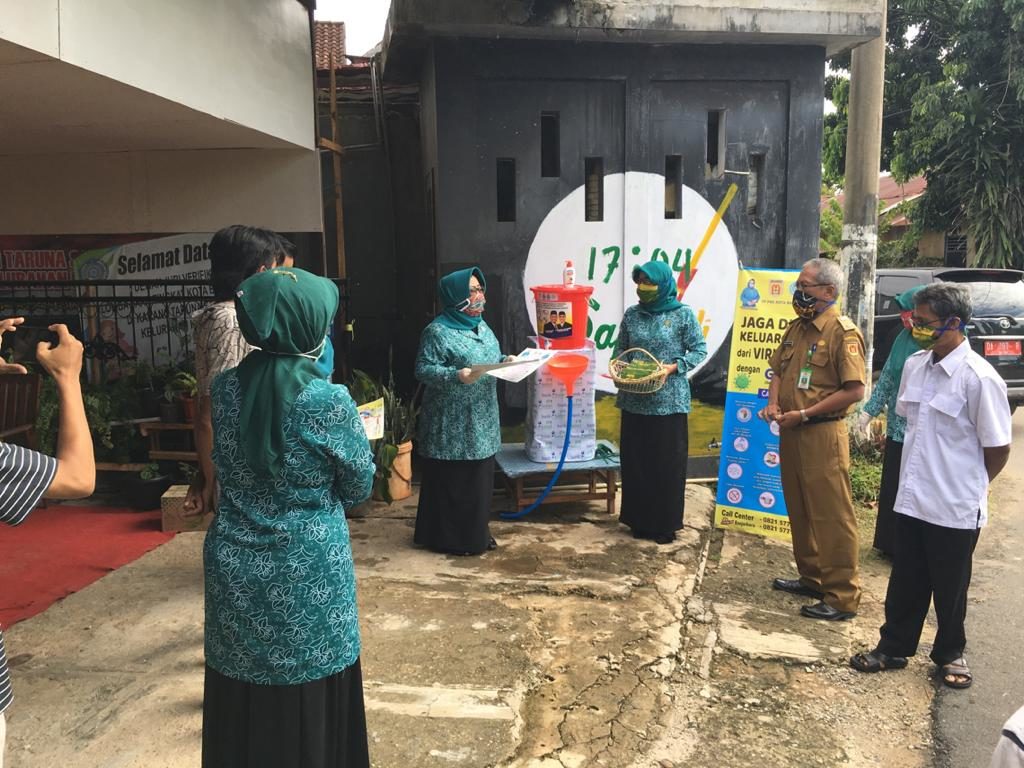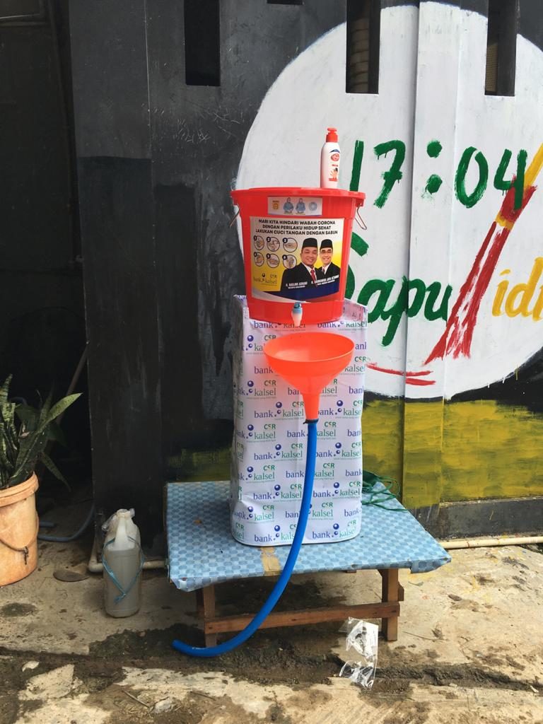 Memberikan tempat cuci tangan, sabun , masker serta brosur dan memberikan himbauan dan arahan tentang bagaimana cara mencuci tangan yang baik dan benar bertempat di RT.17 RW.004 Kelurahan kemuning Kecamatan Banjarbaru Selatan